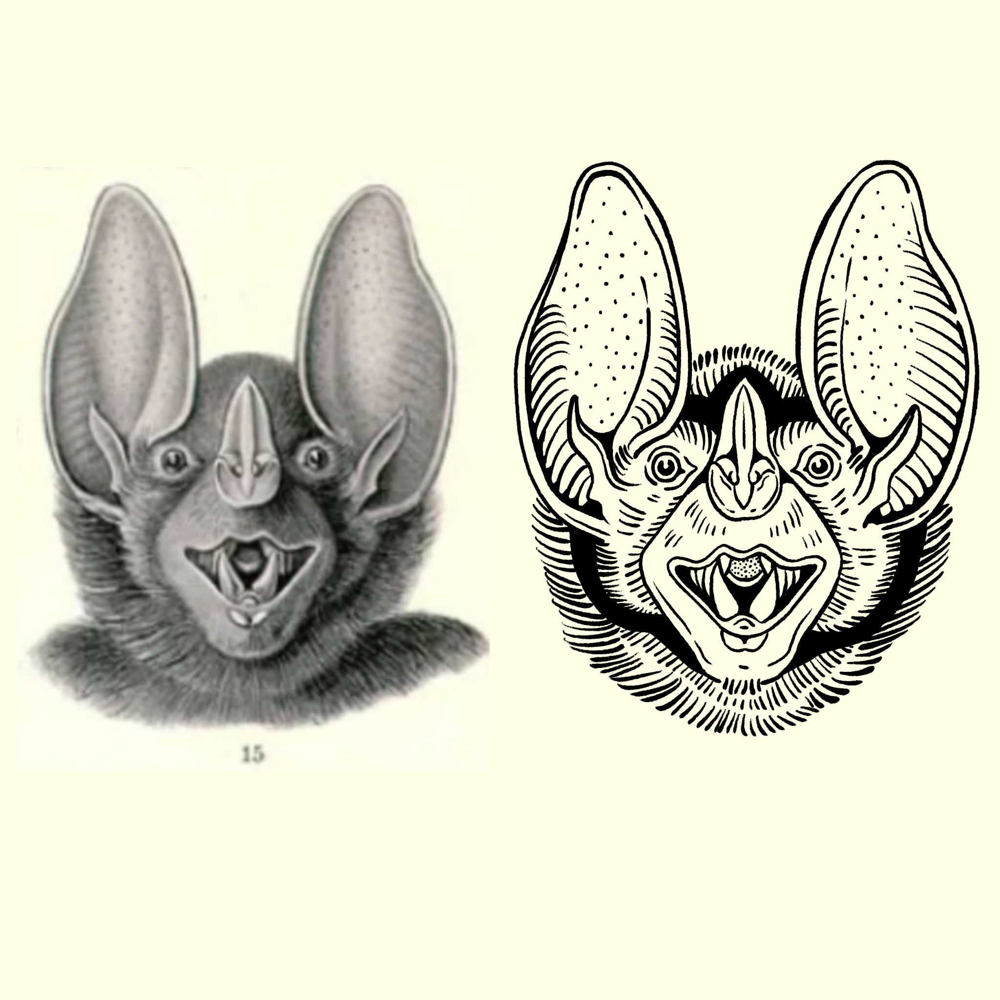 Ersnt Haecket Bat Face Example (how I would translate the orignal illustrations into my style for tattooing)